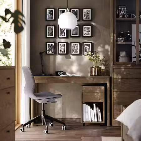 Классический дизайн и брашированный шпон придают мебели серии ТОНСТАД уникальную выразительность.
