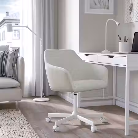 Дизайн этого вращающегося стула отличается плавными линиями и комфортными материалами.