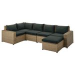 Модульный угловой 4-местный диван, садовый, с табуретом для ног коричневый/Холло черный IKEA СОЛЛЕРОН