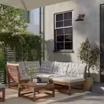 Эта версия модульного дивана NÄMMARÖ по размеру превышает стандартную — идеальное решение, если у вас просторная зона отдыха в саду и вы хотите сделать её ещё уютнее.