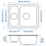 Мойка 1 1, 2 врезная, 58×46 см, нержавеющая сталь IKEA HILLESJÖN ХИЛЛЕШЁН включает в себя следующие материалы: