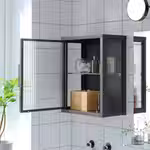 BESTÅ Комбинация настенных шкафов - черно-коричневый/Glassvik чёрный 60x22x64 см