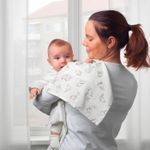 Хлопковая ткань с отличной впитывающей способностью, можно использовать во время кормления малыша, купания и смены подгузника. Удобно брать с собой, можно положить в сумку или даже карман одежды.