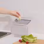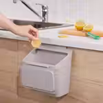 С помощью этого контейнера, подвешенного на дверцу кухонного шкафа, вы можете легко выбрасывать кожуру и другие отходы во время приготовления пищи или чистки мойки.