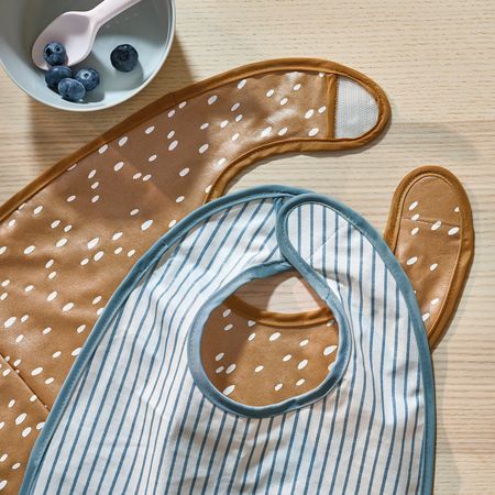 Нагрудники легко надевать и снимать: они фиксируются с помощью застежки-липучки.