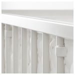 • Бортик легко и надежно фиксируется в кроватке с помощью застежек-липучек.