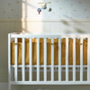 Этот мягкий бортик является цельнокройным. Закрепите его с помощью завязок, а затем положите матрас.