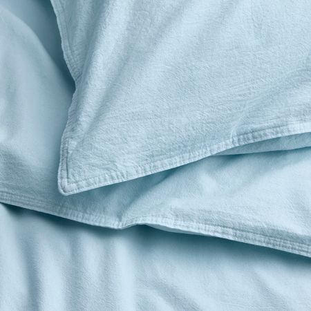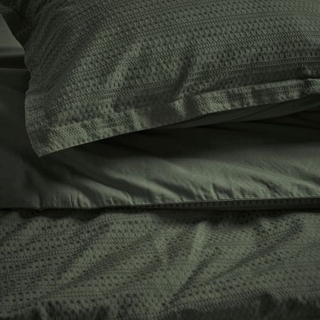 Комплект постельного белья WEYMOUTHTALL с бело-голубым узором в клетку и приятной жатой фактурой — лучший выбор для тёплой погоды, так как мягкая ткань из хлопка и вискозы с лёгким блеском хорошо пропускает воздух.
