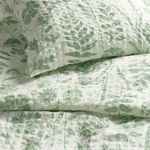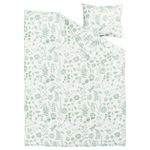 Комплект постельного белья NÅLBJÖRNBÄR расцветает зелёными цветами на белом фоне.