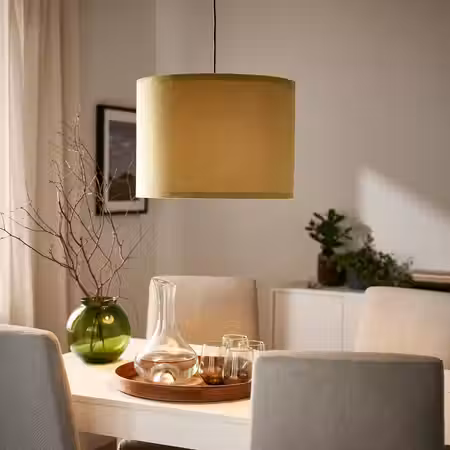 Изящный абажур этого подвесного светильника обтянут мягкой бархатистой тканью, которая придает глубину цвету.