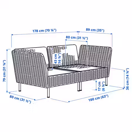 2-местный диван,садовый, серый/Kuddarna светлый серо-бежевый