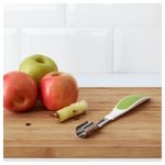Легко и быстро срезает кожуру с яблок и т.п. Легко снять цедру с цитрусовых полосками, например для напитков или салатов. Можно делать шарики из фруктов, масла или мороженого.