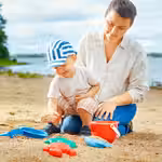Копание ямок и строительство замков из песка — отличный способ развития мелкой и крупной моторики ребенка.