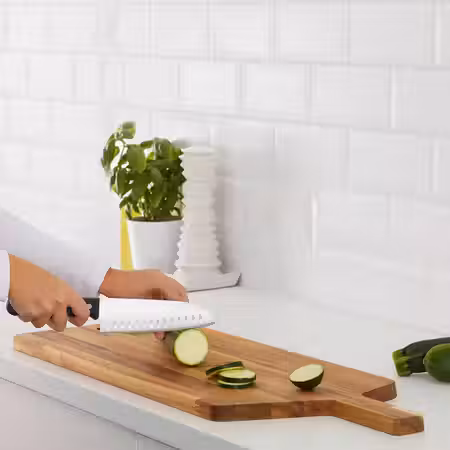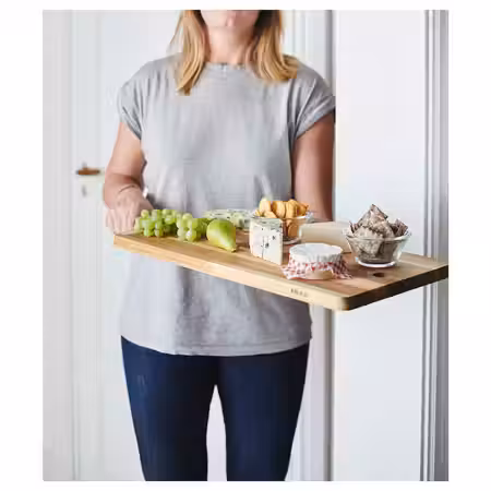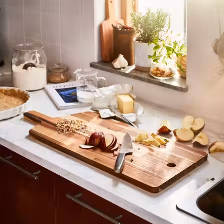 На этой разделочной доске из массива дерева хватит места и для большого стейка, и для целой россыпи аппетитных закусок, сыров и фруктов.