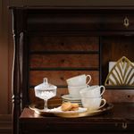 Изящное сочетание белой посуды и хрусталя с полированной латунью и темным деревом будто переносит вас в другое место и время. Где бы вы ни находились, изысканная атмосфера лучших кофеен мира всегда будет с вами.