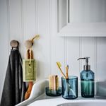 В набор входит: 1 дозатор для жидкого мыла, 340 мл (диам. 7 см, высота 19 см), 1 стакан для зубных щеток (диам. 8 см, высота 10,3 см) и 1 лоток (диам. 8,5 см).