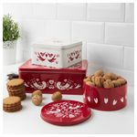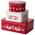 Подходит для хранения пирожных, печенья и других сухих продуктов. Для экономии места при хранении пустые емкости меньшего размера можно поставить в большие. Размеры: диам. 16 см, высота 8 см (1,6 л), 17x17x9 см (2,6 л) и 27x18x10 см (4,8 л).