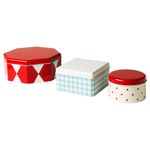 В набор входит: 1 круглая емкость (11x7 см, объем 0,4 л), 1 квадратная емкость (13x13x8 см, объем 0,9 л) и 1 восьмигранная емкость (19x19x8 см, объем 1,7 л).
