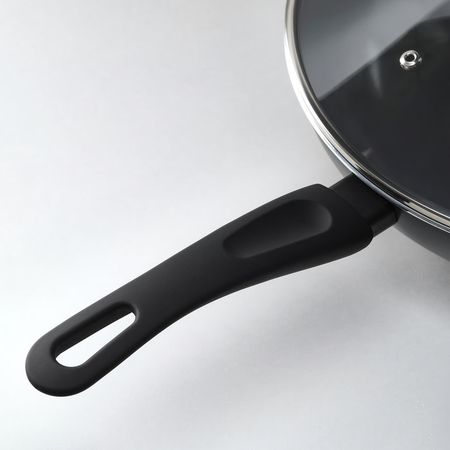 Эта кастрюля из нержавеющей стали оснащена носиком, облегчающим наливание и слив жидкости, и крышкой из термостойкого стекла со встроенным ситечком.