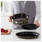 Благодаря антипригарному покрытию выпечку легко выложить из формы. В наборе: форма для выпечки со съемным дном (диам. 22 см, объем 2,2 л) и форма для пирога (диам. 28 см). Сталь, Антипригарное покрытие.