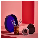 В набор входит: 1 стакан (диам. 6,5 см, высота 10 см), 1 стакан (диам. 8 см, высота 7 см), 1 круглый лоток (диам. 23 см, высота 3,5 см) и 1 грушевидный лоток (длина 12,5 см, ширина 10 см, высота 4 см).