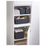 Ручная работа – каждая корзина уникальна. Размеры (ДxШxВ): 2 шт. 9x9x11 см, 1 шт. 19x19x15 см и 1 шт. 29x9x11 см. 100% полипропилен. Материал, из которого изготовлено данное изделие, подвергается переработке.