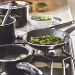 Этот материал равномерно распределяет тепло и быстро реагирует на изменение температуры, поэтому пища не пригорает и не прилипает к поверхности.
