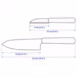 В набор входит: поварской нож 14 см (общ. длина 27 см) и нож для корнеплодов 7 см (общ. длина 17 см).