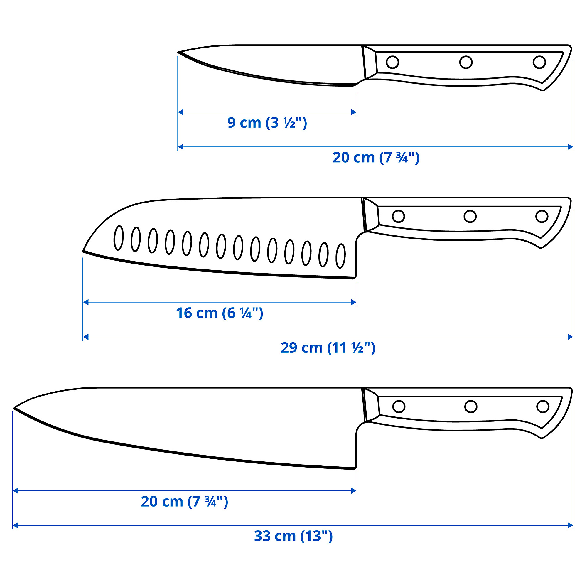 Особенности «VARDVARDAGEN ВАРДАГЕН ВАРДАГЕН набор ножей, 3 штуки, нержавеющая сталь, грецкий орех» отмеченные производителем IKЕА: