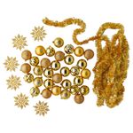 В набор входит: 1 гирлянда (длина 8 м), 6 снежинок (высота 13 см) и 32 шарика (диам. 8 см).