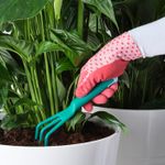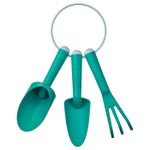 Чтобы садовые инструменты были под рукой, их можно повесить на прилагающееся кольцо.Садовые инструменты изготовлены из прочного пластика, армированного стекловолокном.В набор входит: 3 садовых инструмента – совок, грабли и закругленный совок.
