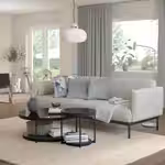 Круглые белые столики FRÖTORP с минималистичным дизайном гармонично вписываются в пространство.