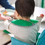 Нагрудники легко надевать и снимать: они фиксируются с помощью застежки-липучки.