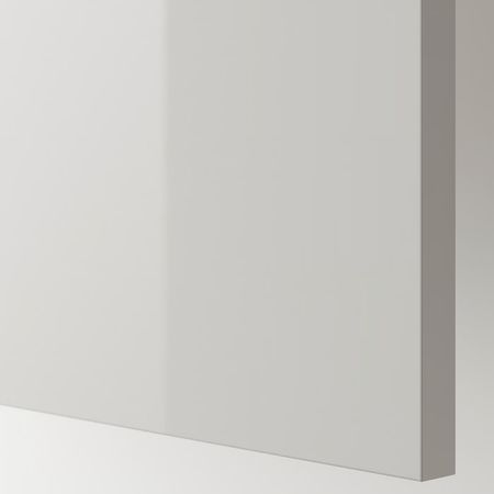 Кухонные фасады HAVSTORP универсального светло-серого цвета имеют лаконичный дизайн с гладкой поверхностью.