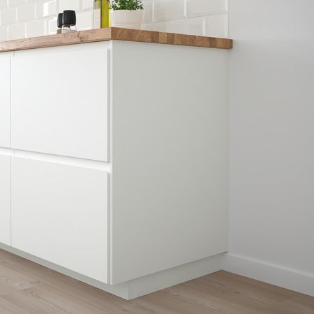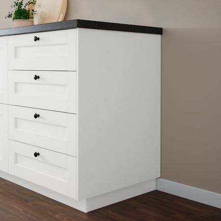 Накладная панель сочетается с дверцами и фронтальными панелями СТЕНСУНД белого цвета, подчеркивая сельское очарование интерьера.