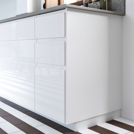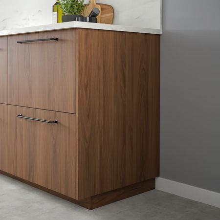 Закрепите накладную панель на боковой панели последнего шкафа в ряду.