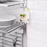 Когда кухонные принадлежности, специи и рецепты размещаются в удобных аксессуарах для хранения на стене, у вас сразу появляется больше места для готовки. С товарами серии КУНГФОРС легко создать индивидуальное решение, чтобы все необходимое было на виду и под рукой, как у профессиональных поваров. Кастрюли — на открытых полках, ножи — на магнитной планке, а кухонные принадлежности — на крючках. Готовьте с удовольствием!