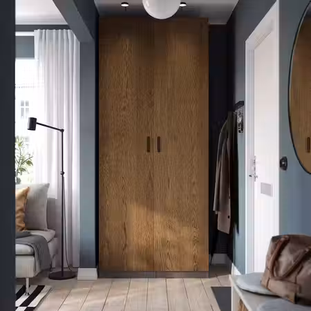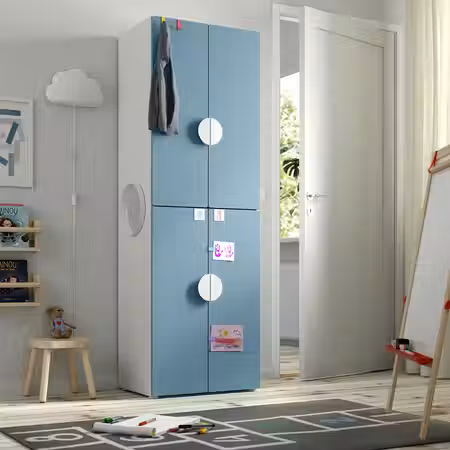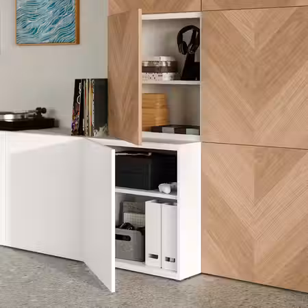 Разместите свои любимые вещи на верхней части шкафа, а предметы, которые обычно загромождают пространство, спрячьте внутри за дверцами.