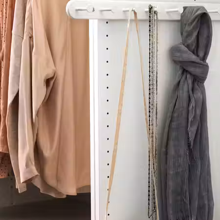 Используйте пространство максимально эффективно, прикрепив к каркасу или полкам рейлинг ЭНХЕТ, на который можно повесить крючки с контейнерами.