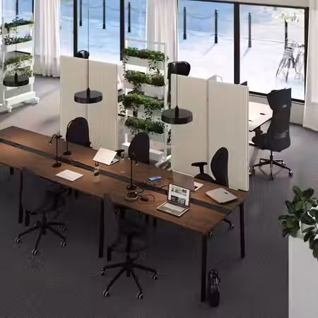 Столешница с отделкой из ясеневого шпона и ножки из массива березы.
