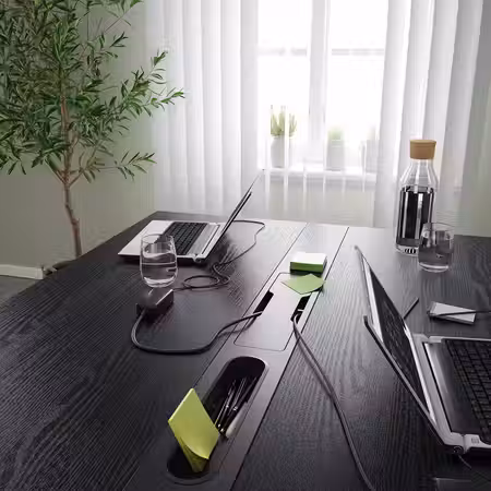 MITTZON МИТТЗОН 395.334.22 Конференц-стол, шпон грецкого ореха/чёрный 140x108x75 см