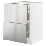 Напольный шкаф 2 фронтальные панели, 2 нижних, 1 средний, 1 высокий ящ, белый/Ворста нержавеющая сталь 60x60 см IKEA METOD МЕТОД