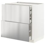 Напольный шкаф 2 фронтальные панели, 2 нижних, 1 средний, 1 высокий ящ, белый/Ворста нержавеющая сталь 80x60 см IKEA METOD МЕТОД