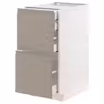 Дополните ее матовыми фасадами УППЛЁВ серо-бежевого цвета со встроенными ручками и скошенными краями, и получится строго очерченный дизайн в современном стиле.
