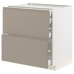 Дополните ее матовыми фасадами УППЛЁВ серо-бежевого цвета со встроенными ручками и скошенными краями, и получится строго очерченный дизайн в современном стиле.