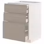 Дополните ее матовыми фасадами УППЛЁВ серо-бежевого цвета со встроенными ручками и скошенными краями, и получится строго очерченный дизайн в современном стиле.