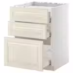 Дополните фасадами БУДБИН белого с оттенком цвета со скошенным краем, чтобы подчеркнуть традиционную выразительность и уют интерьера.