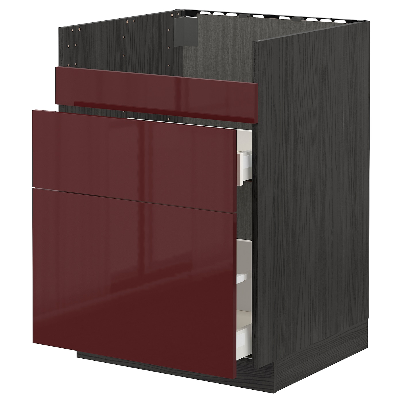 Напольный шкаф для мойки ХАВСЕН/3фасада/2ящ, черный Калларп/глянцевый темный красно-коричневый 60x60 см IKEA МЕТОД / МАКСИМЕРА включает в себя следующие материалы: