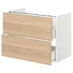 Серия ЭНХЕТ позволяет с легкостью создавать комбинации мебели, чтобы начать в ванной новую жизнь. В этом напольном шкафу под раковину есть 2 ящика для всего необходимого, а фасады с отделкой под дуб сделают интерьер выразительнее.