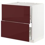 Напольный шкаф под мойку + 2 фронтальных панели, 2 ящ, белый Калларп/глянцевый темный красно-коричневый 80x60 см IKEA METOD